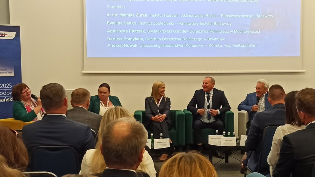 W dniu 9 maja braliśmy udział w Europejskim Kongresie Odnowy i Rozwoju Wsi, który odbył się w tym roku na Międzynarodowych Targach w Poznaniu. Podczas wydarzenia odbył się panel dyskusyjny pt. ,,Działania demonstracyjne – wzorcowy model współpracy nauki i doradztwa”, na którym relacjonowaliśmy przebiegi spotkań demonstracyjnych w naszym gospodarstwie sadowniczym oraz przedstawiliśmy opinię na ich temat wraz z praktycznym uzasadnieniem. Moderatorem dyskusji była pani prof. Tartanus z Instytutu Ogrodnictwa w Skierniewicach.